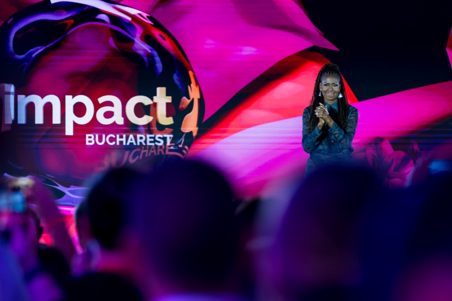 Momentul central al evenimentului a fost prezența, în exclusivitate în România, a fostei Prime Doamne a Statelor Unite, Michelle Obama, autoare de bestselleruri internaționale, dar mai ales, un lider recunoscut în lumea întreagă pentru inițiativele sale în educație, sănătate și egalitate de șanse. Foto: Impact Bucharest