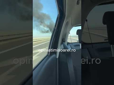 O mașină a luat foc pe Autostrada Vestului, în Timiș
